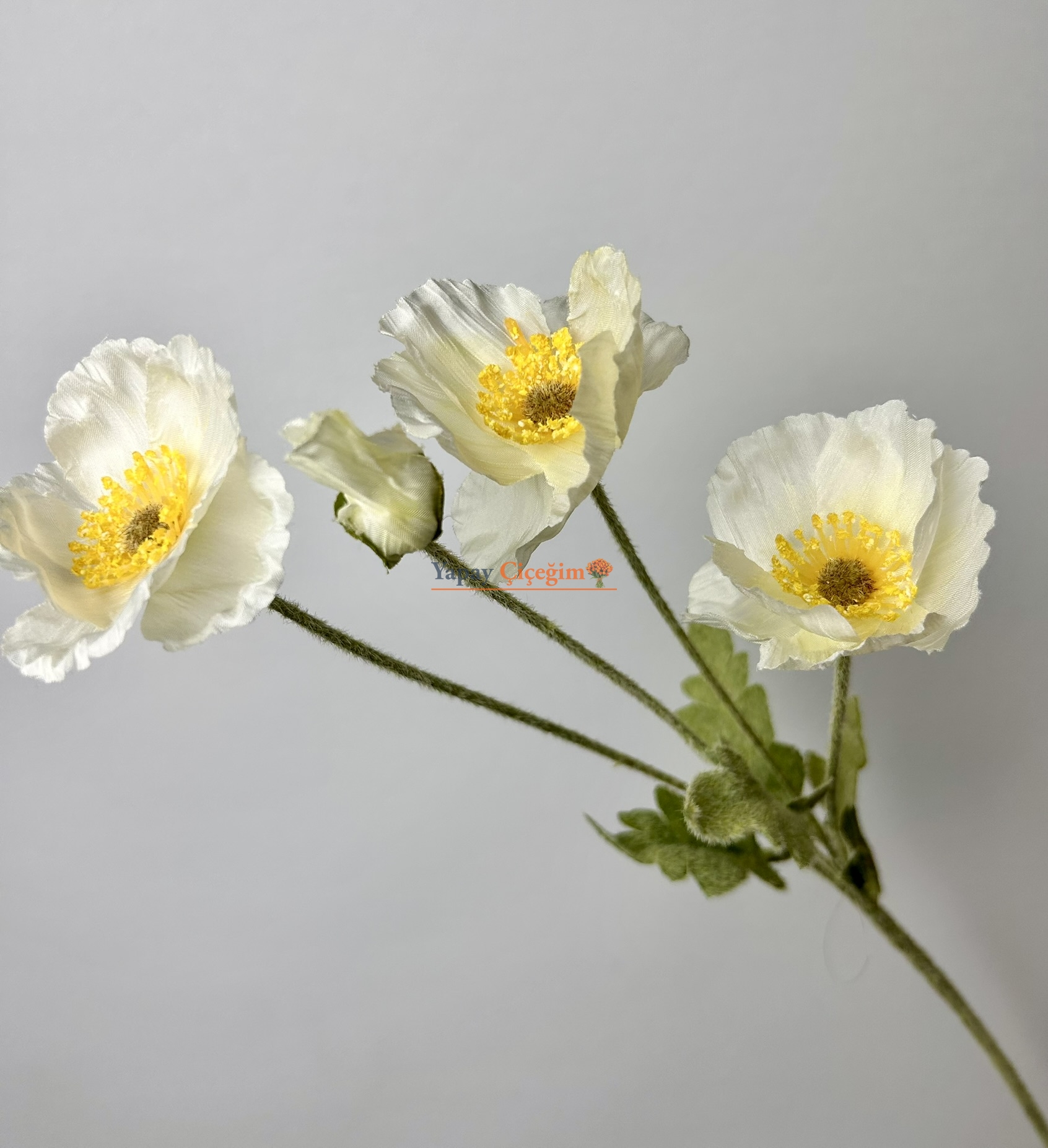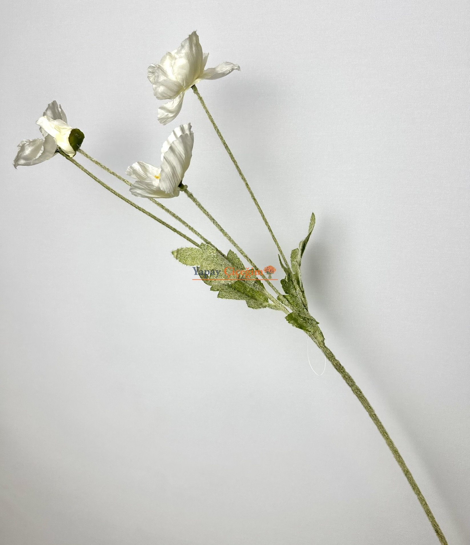 Kumaş Yapay Gelincik Çiçeği Beyaz