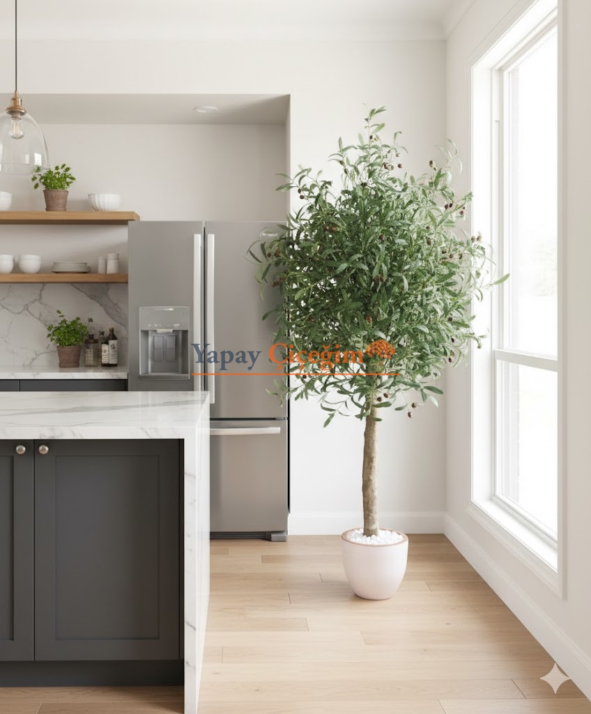 - Salonlarda Zarafet: Şık bir vazo veya saksıda kullanılan yapay zeytin ağacı, oturma odanızda doğal bir odak noktası oluşturur.