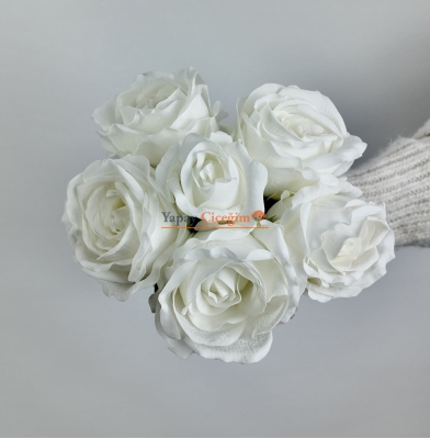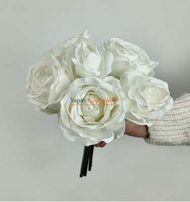 Kaliteli malzemelerden üretilen yapay beyaz çiçekler, doğal çiçeklere oldukça benzeyen bir görünüm sunar.