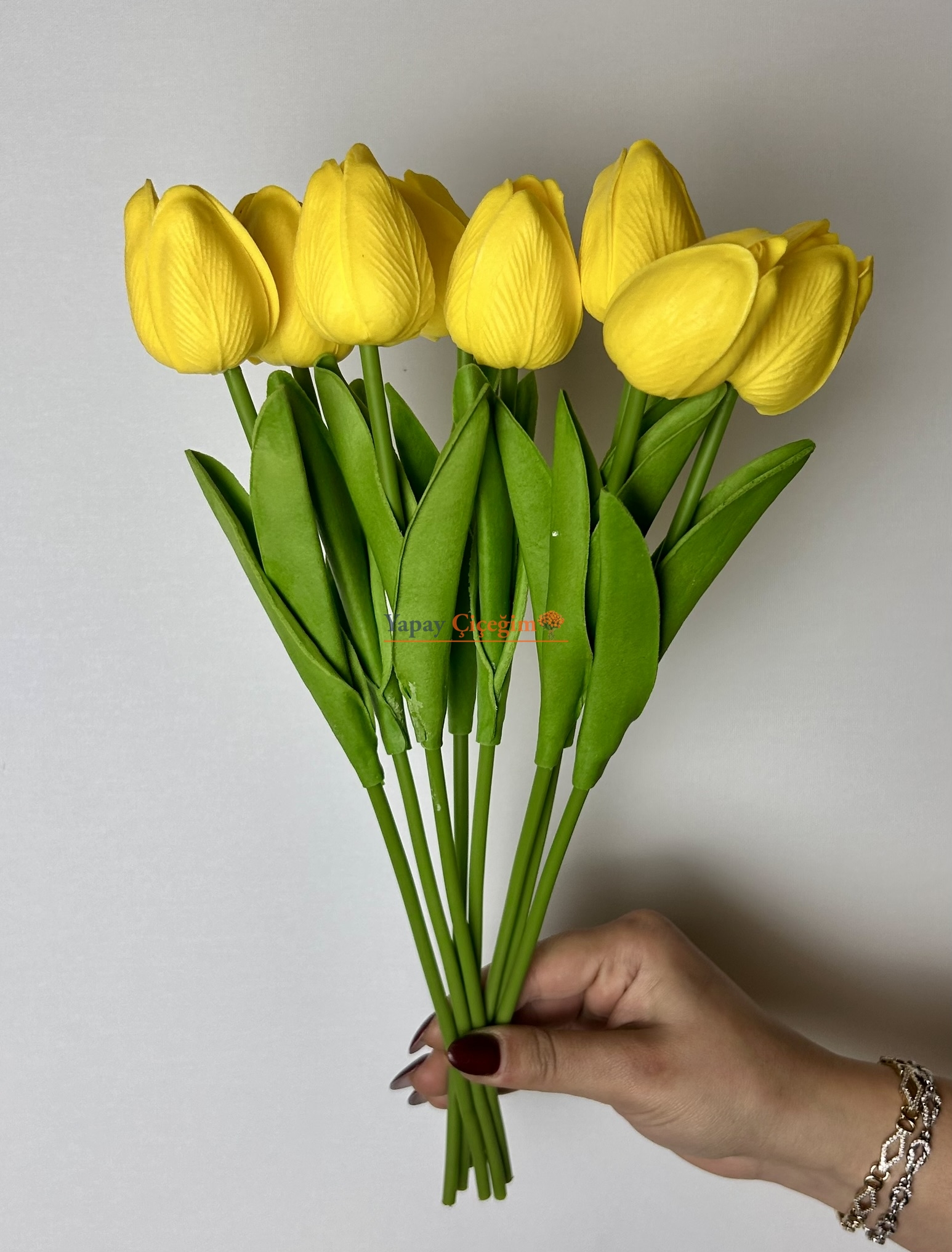 - Islak lale buketinin toplam yüksekliği: 30 cm